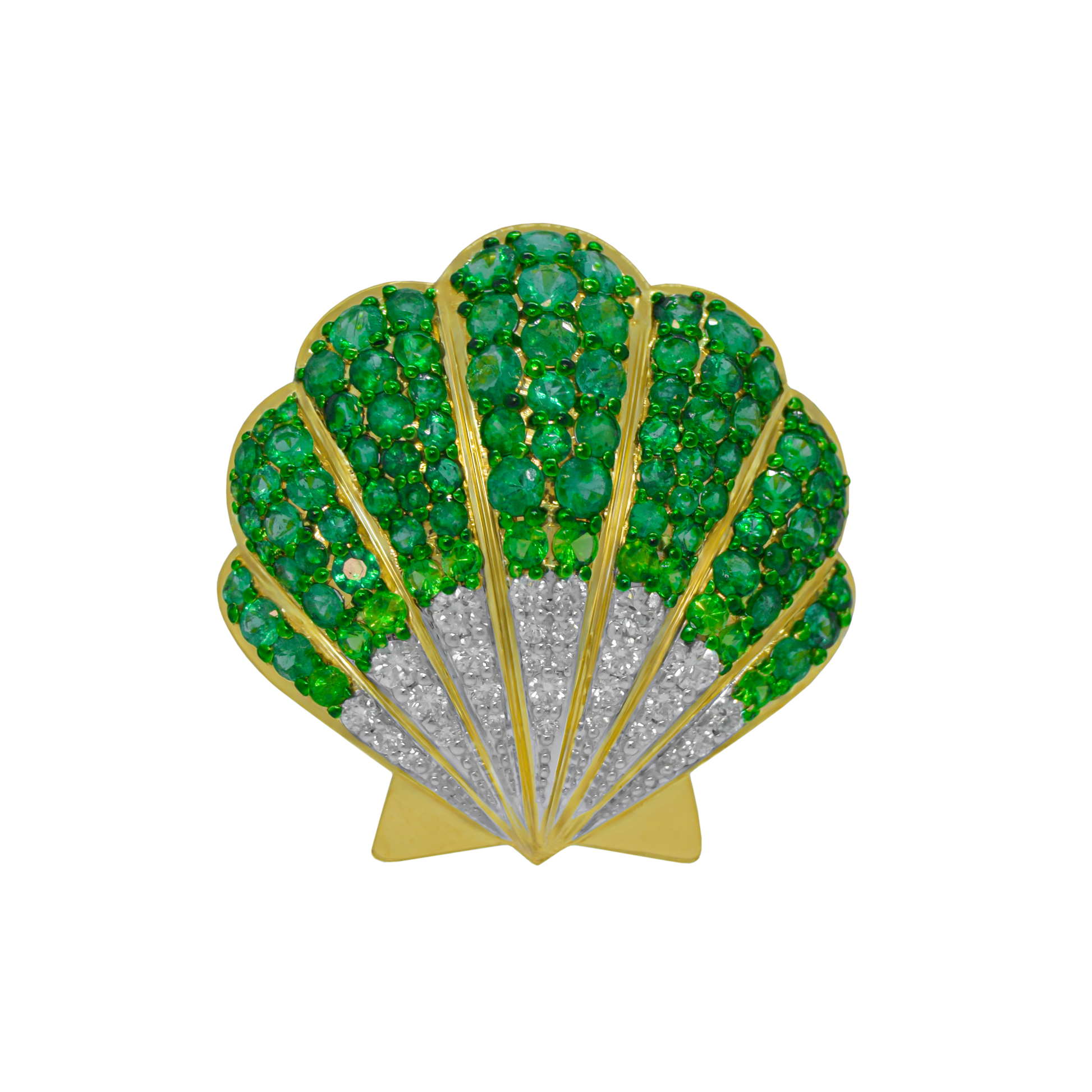 Shop this Seashell Bag Bijoux set in 18KT White Gold with Natural FG/VVS-VS Diamonds, Emeralds by Ashna Mehta