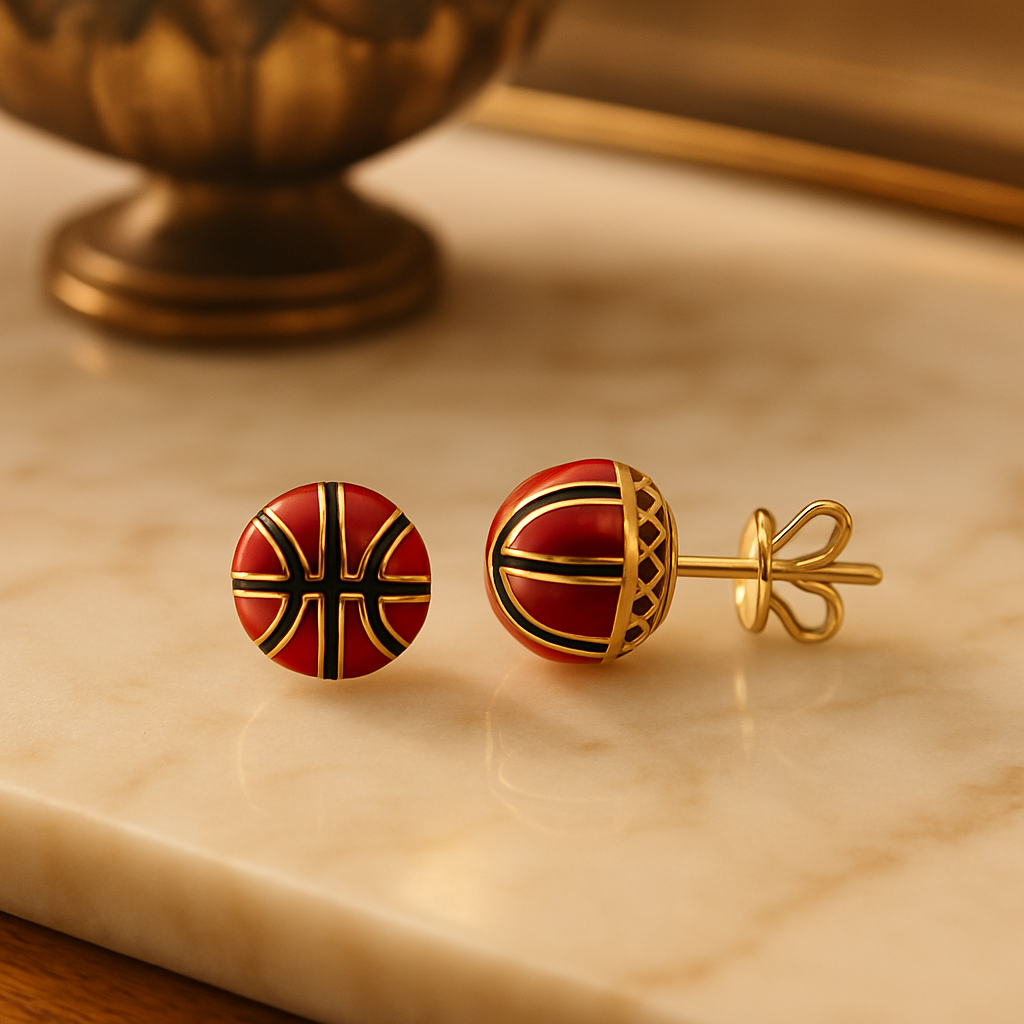 Crafted in 18K yellow gold and hand-finished with vibrant red and black enamel, these basketball-inspired studs celebrate strength, individuality, and a love for the game.