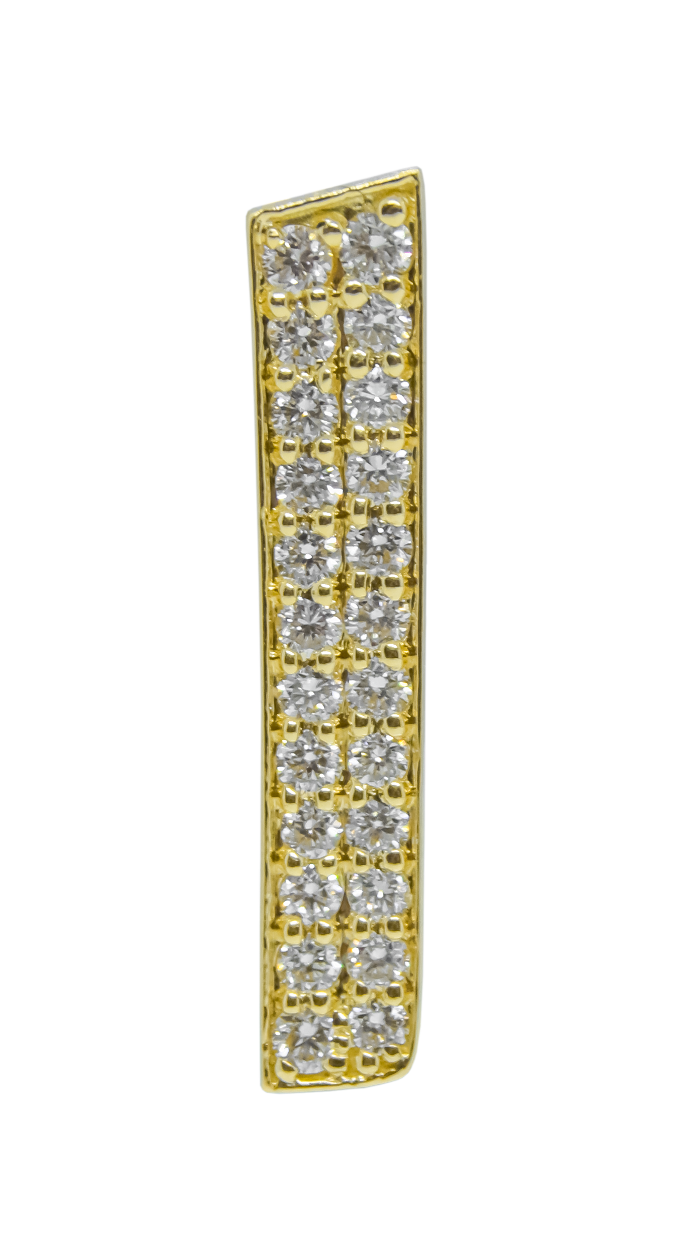 The 'ALIF' Bag Bijoux is a radiant tribute to Arabic calligraphy, sculpted in 18K yellow gold. This medium-sized charm is encrusted with approximately 0.35 carats of natural FG/VVS-VS diamonds, reflecting exceptional brilliance and artisanal elegance.