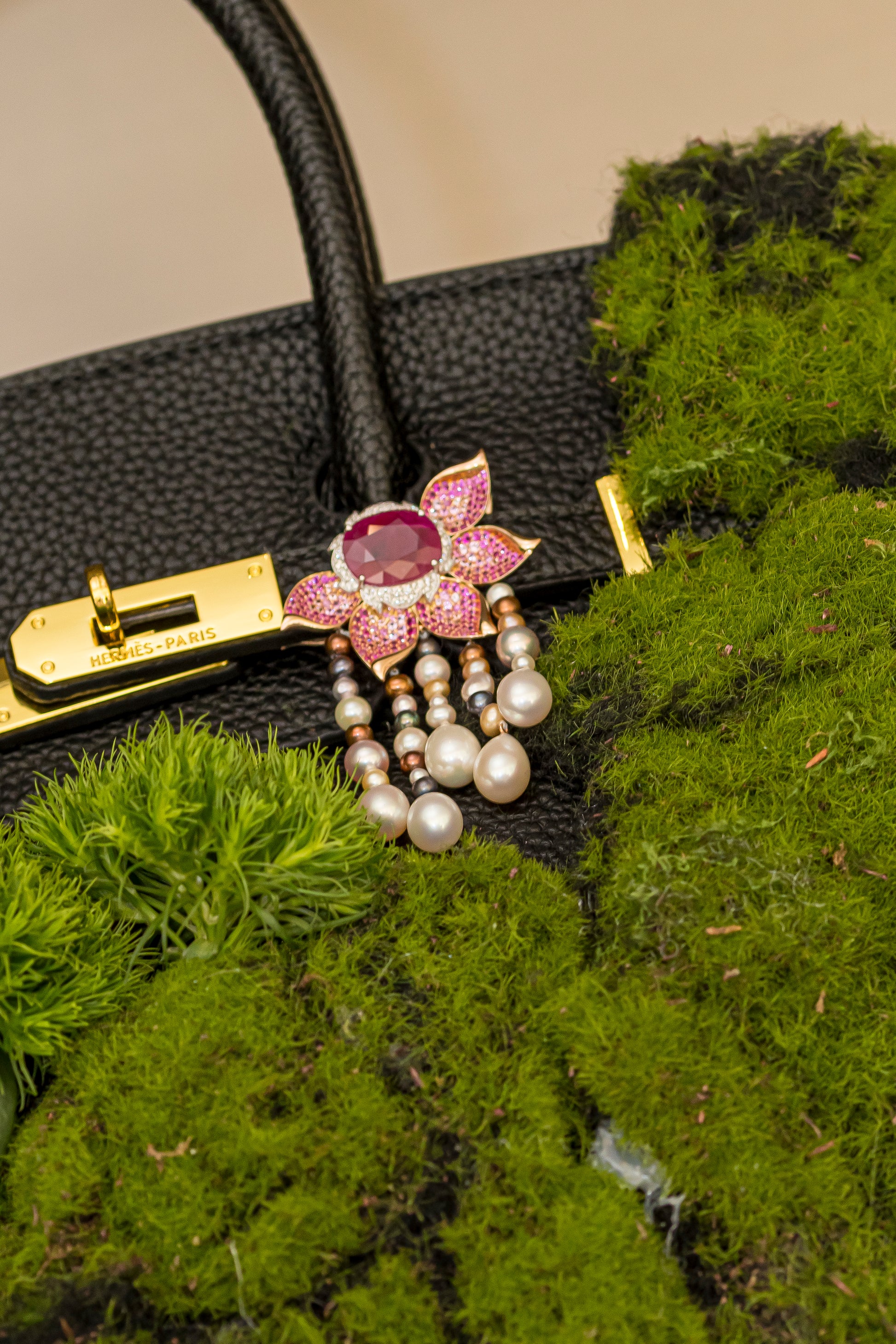 Part of the signature Bag Bijoux collection, this enchanting piece is created to elevate Hermès icons like the Birkin 25, Kelly 25, and Kelly Cut. With its luxurious blend of precious stones and soft, feminine curves, the Flower Bag Bijoux seamlessly transitions from statement bag charm to heirloom-quality pendant—merging fine jewelry with poetic expression.